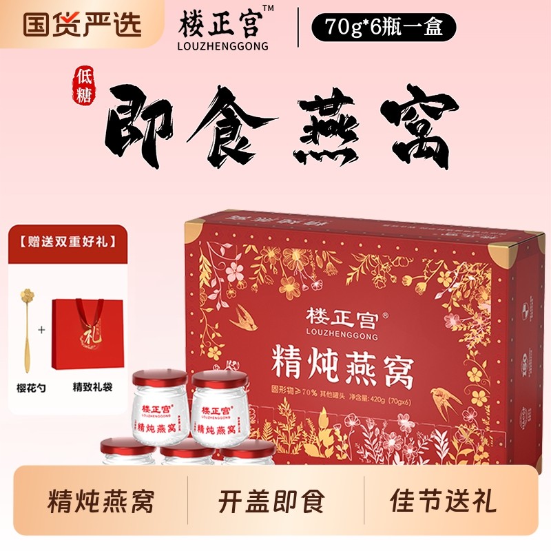 楼正宫精炖燕窝鲜炖即食70g*6瓶/盒送礼礼盒孕妇长辈中式养生冲饮
