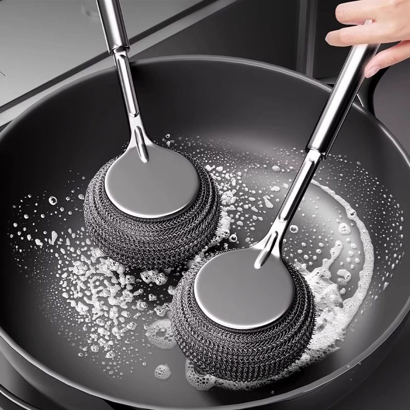 带柄钢丝球刷子长杆洗锅不生锈清洁厨房不伤手洗碗瓶罐不掉渣灶台