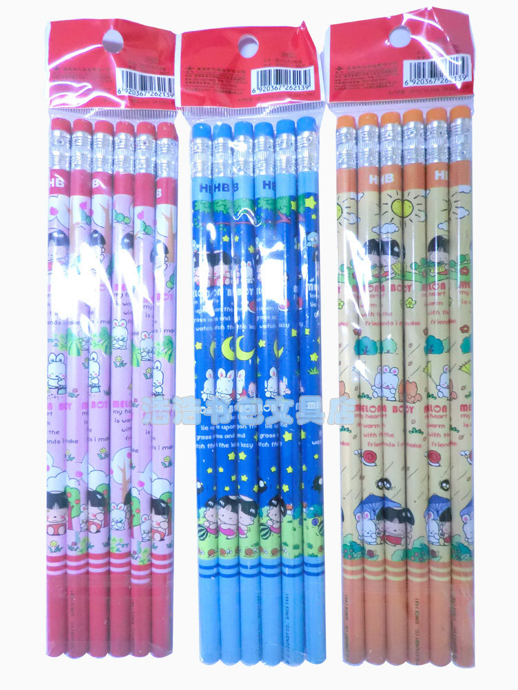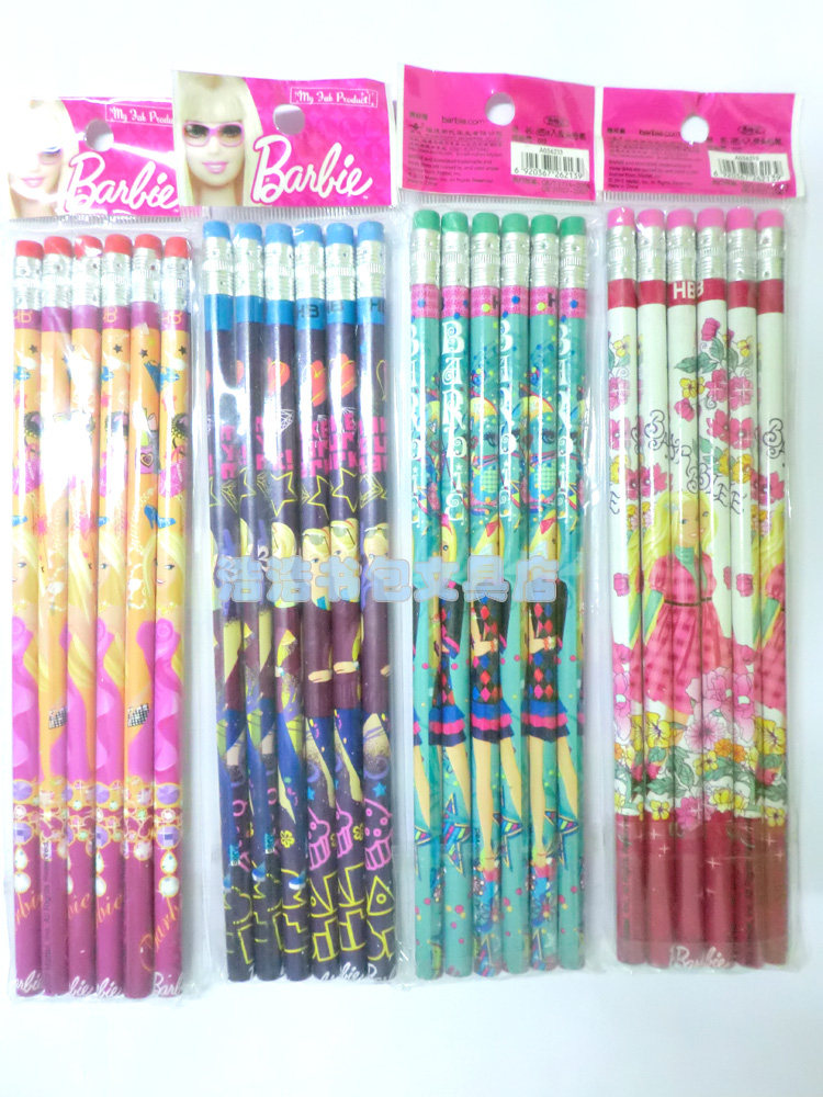 专柜正品~芭比-西瓜6入皮头铅笔 橡皮头铅笔 HB铅笔 小学生文具
