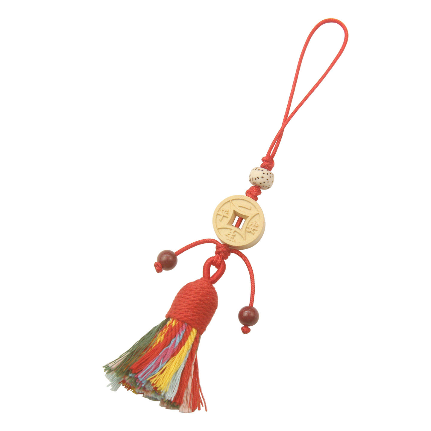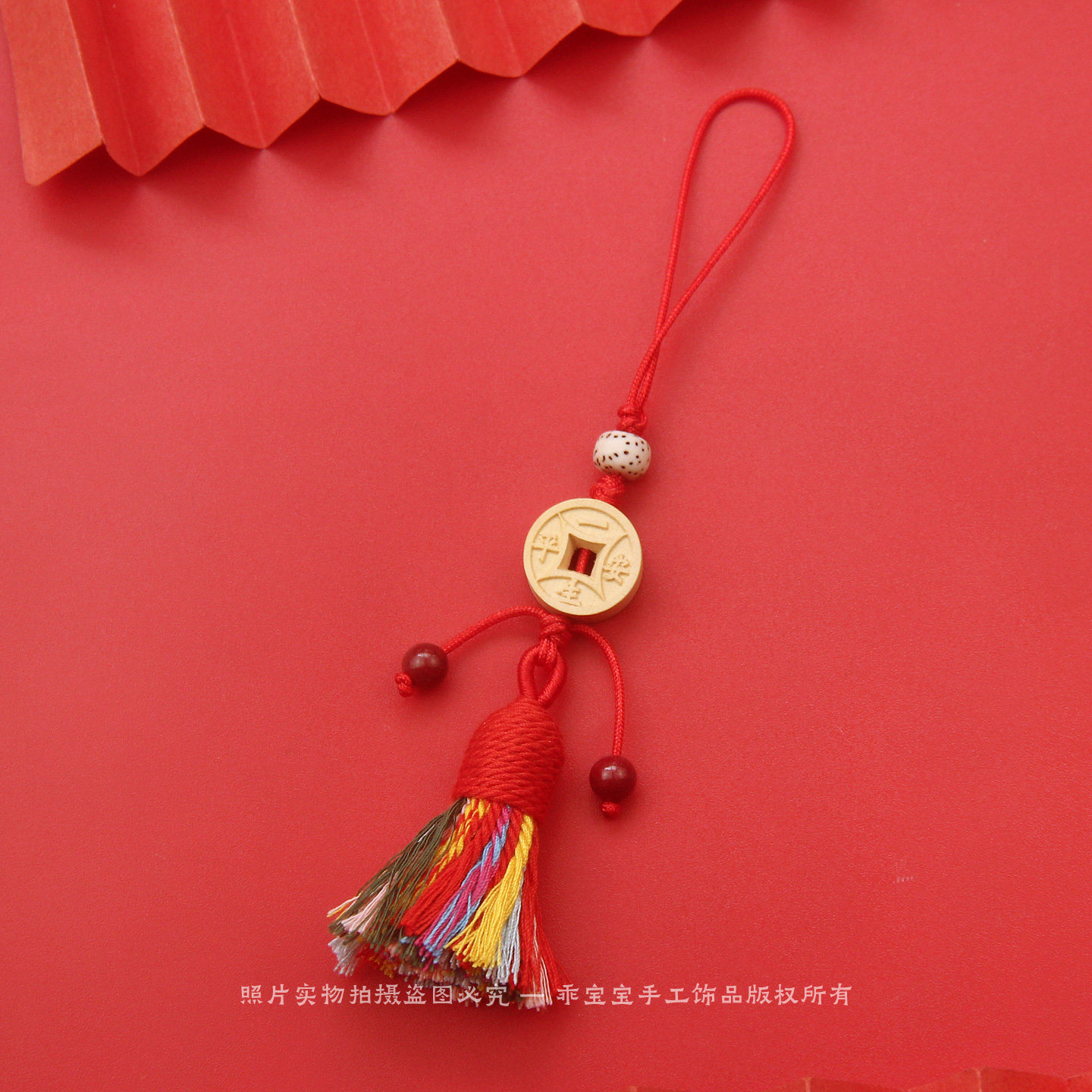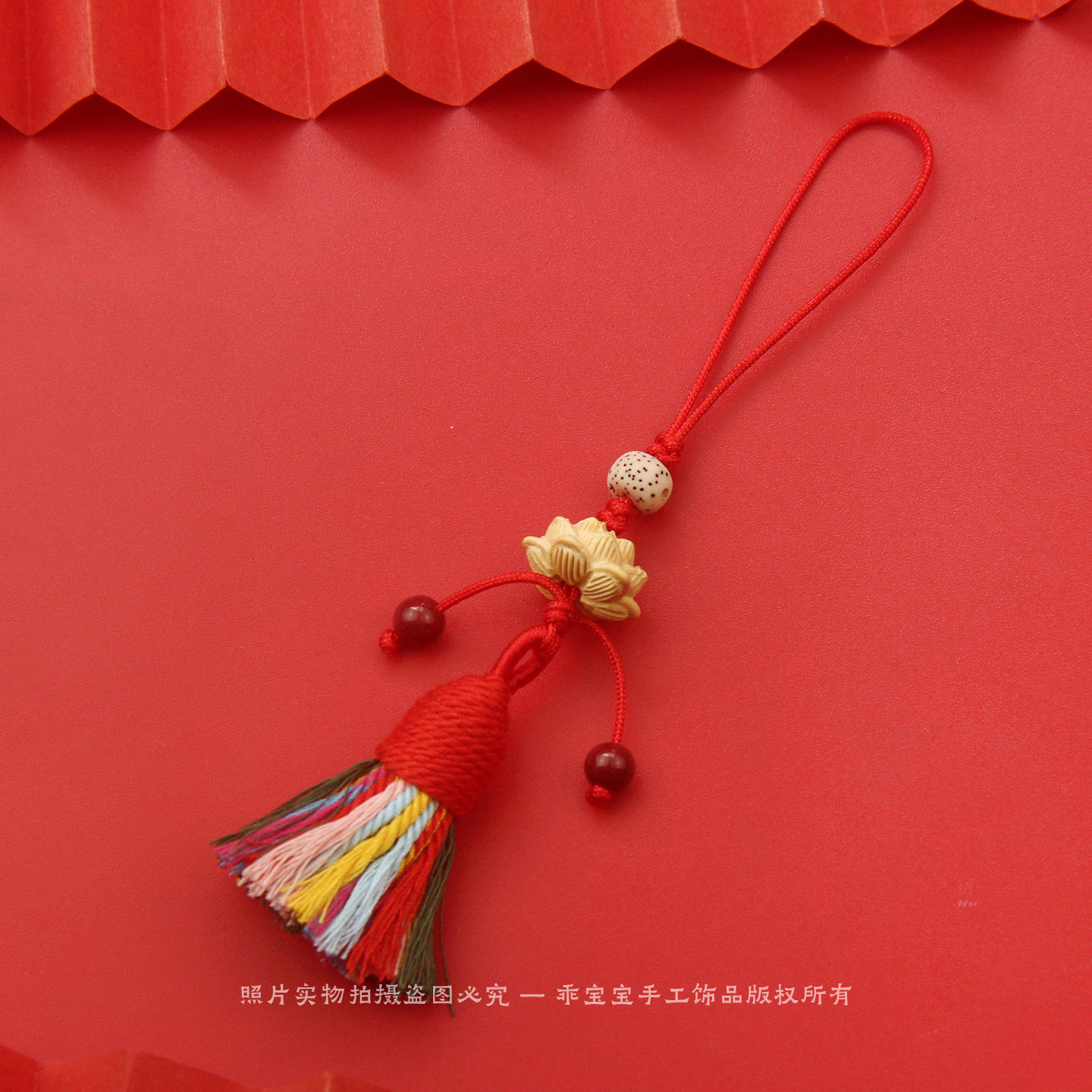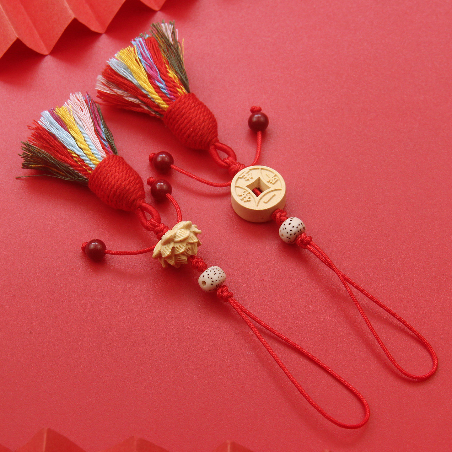 黄杨木莲花手机挂件五彩绳流苏吊坠钥匙扣包包挂饰随身平安护身符
