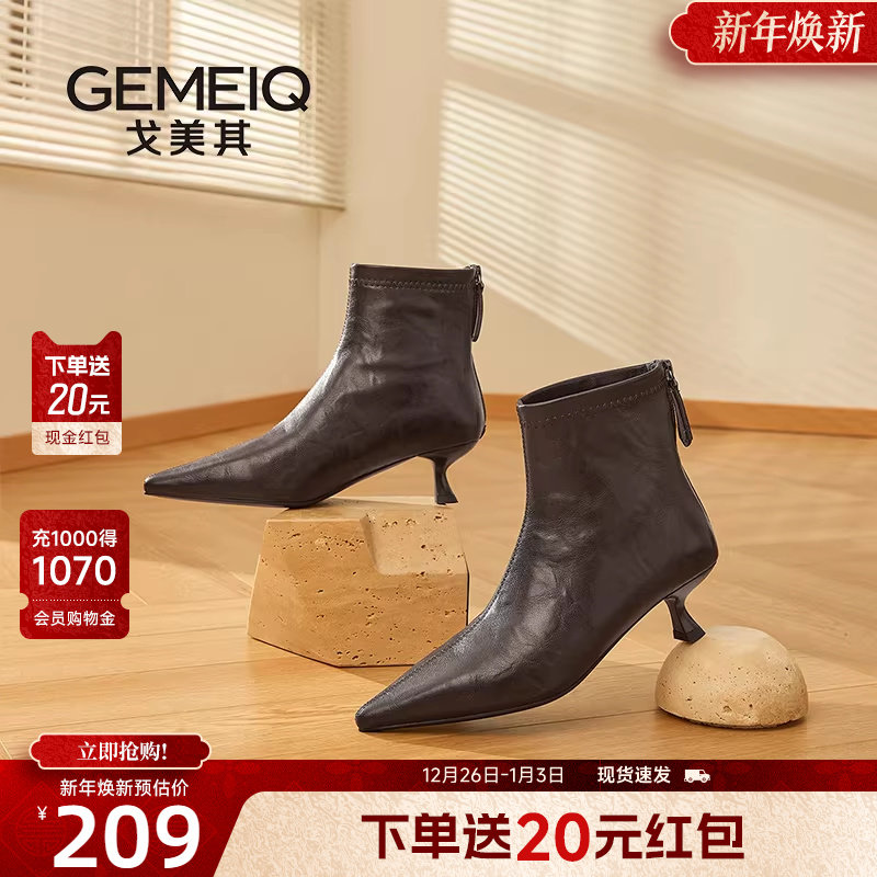 戈美其商场同款高跟鞋女细跟不累脚2025冬季新款美拉德靴子马丁靴