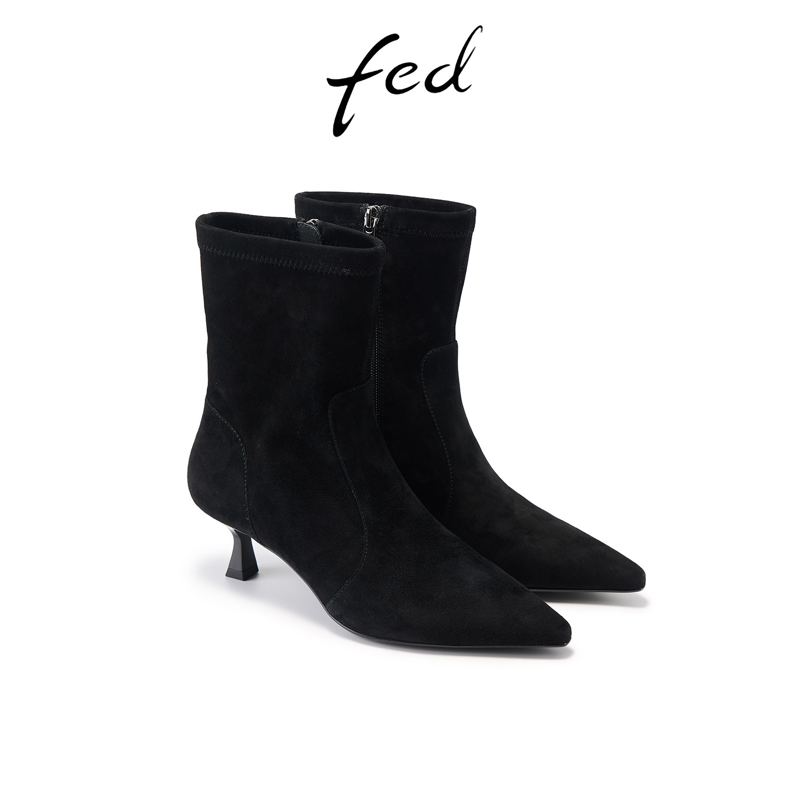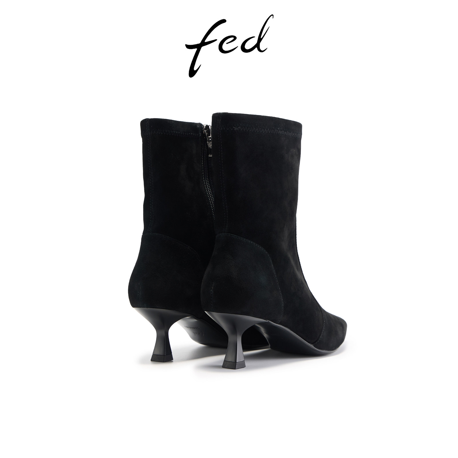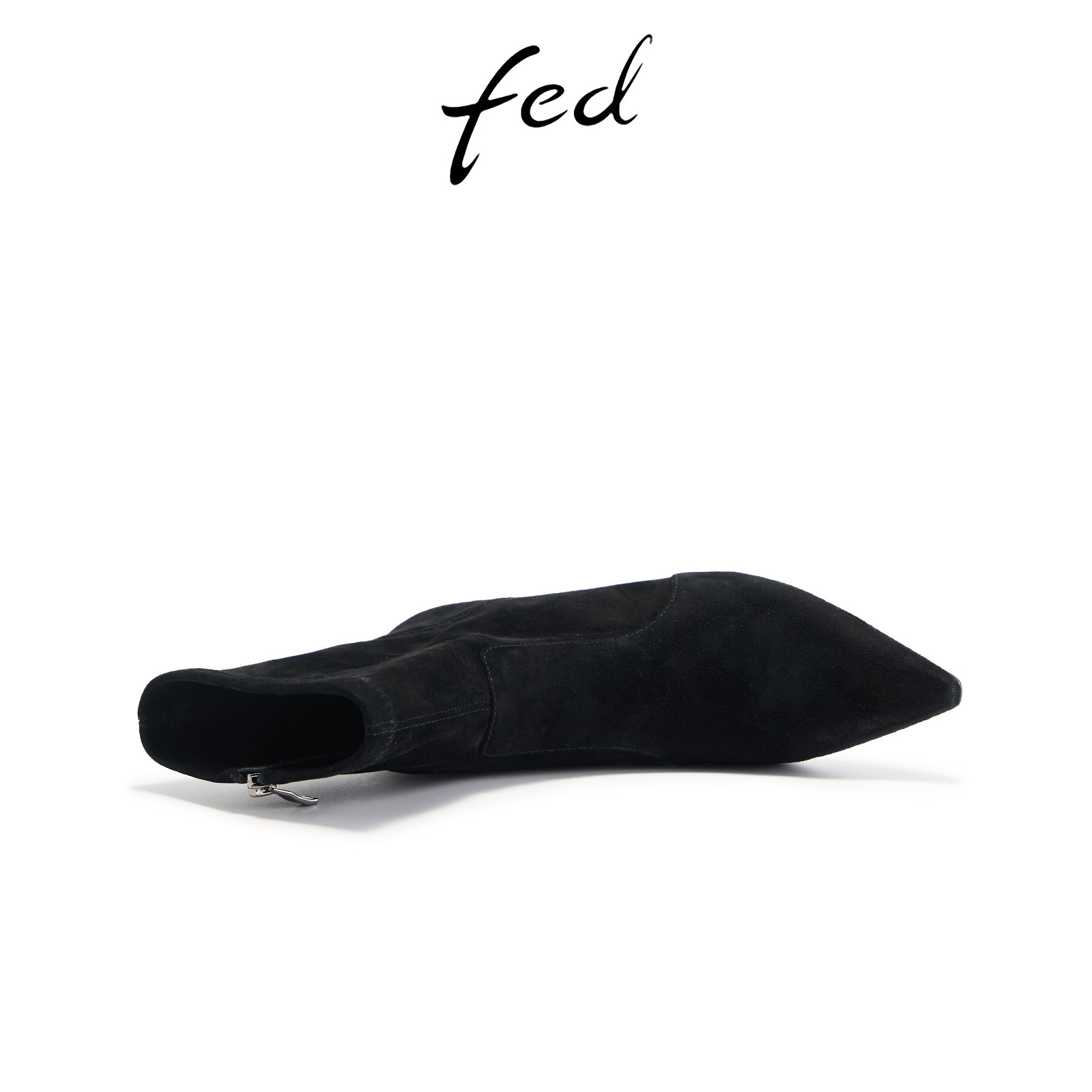 fed尖头时装靴女冬季新款女靴弹力短靴高跟瘦瘦靴女款S1104-YA011