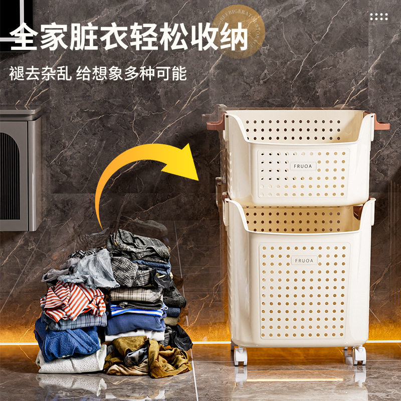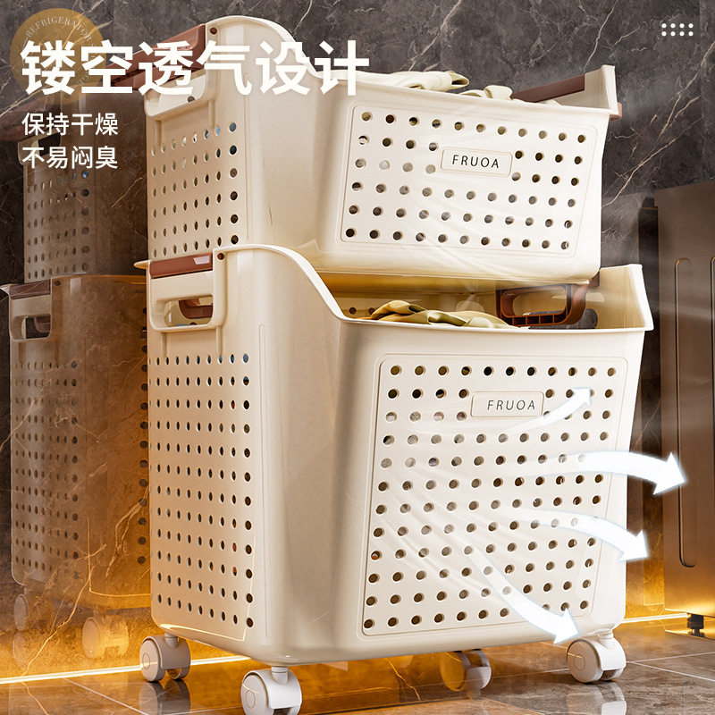 蕉正双层洗衣篮大容量衣服收纳筐玩具桶卫生间浴室带轮塑料脏衣篓