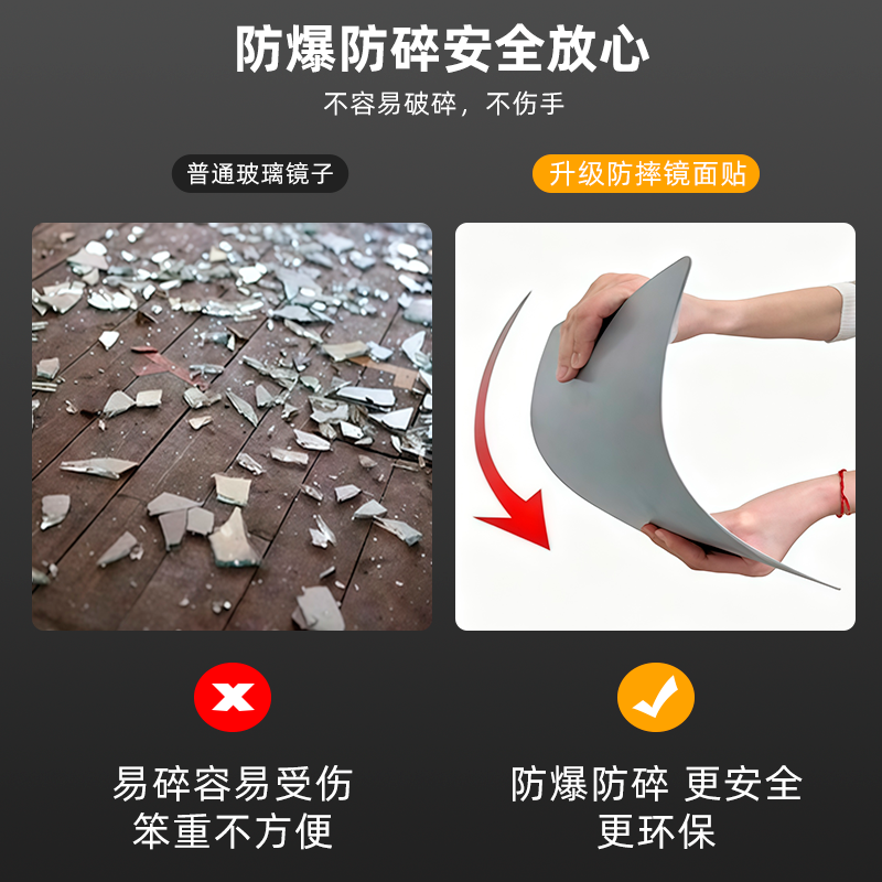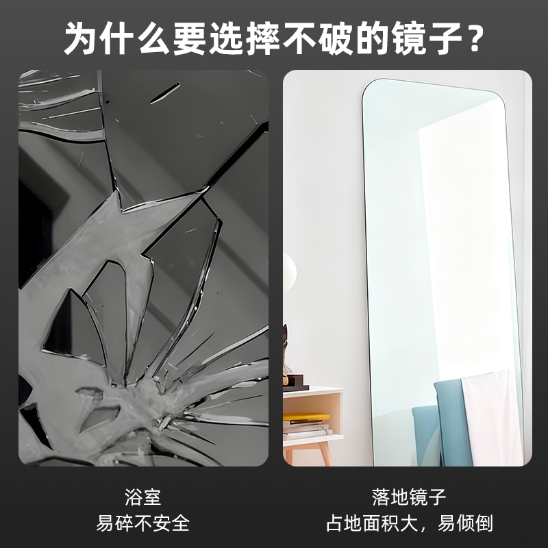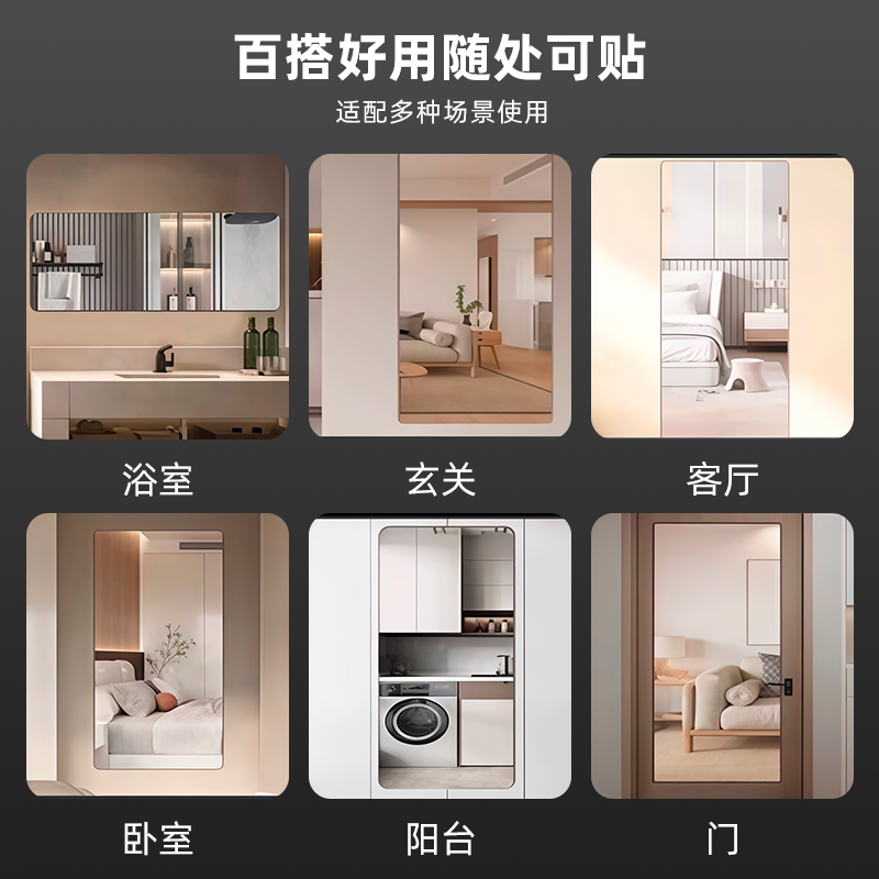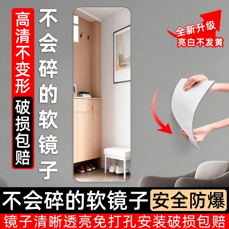 亚克力镜子软镜子全身穿衣镜贴墙自粘卫生间免打孔高清化妆衣柜