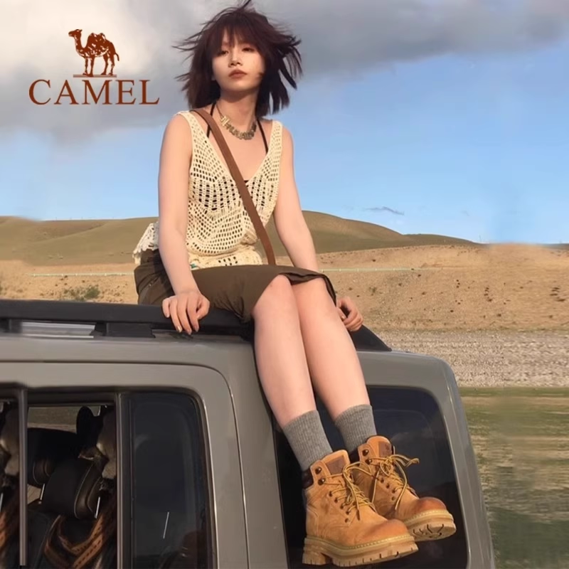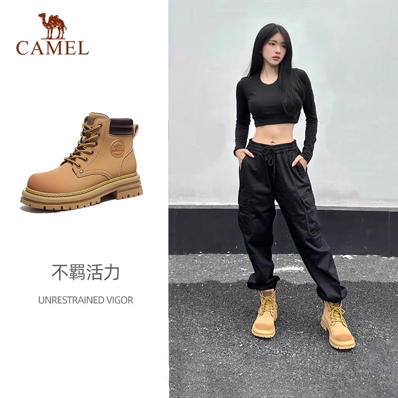 骆驼马丁靴女鞋2025冬季加绒户外登山鞋大黄靴女靴厚底短靴时装靴