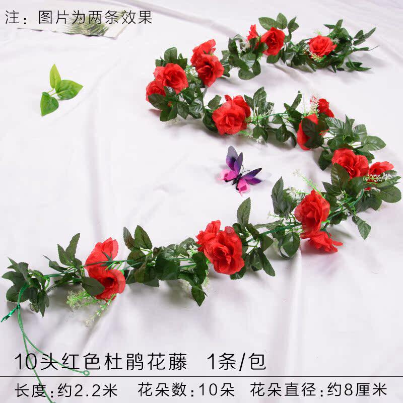 仿真玫瑰花藤条壁挂假花藤水管道空调管室内客厅装饰吊顶藤蔓植物