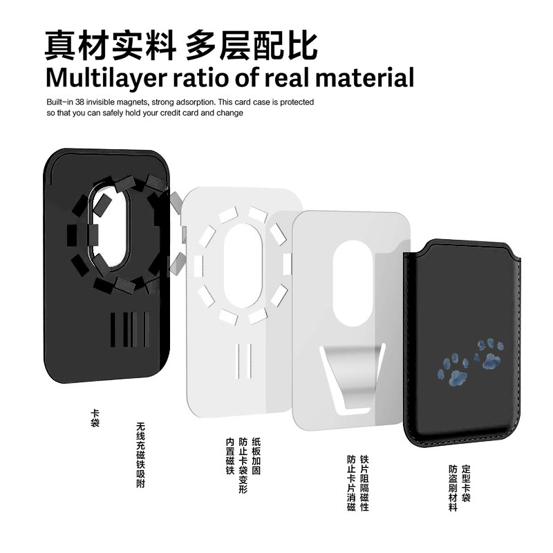 爪印适用苹果magSafe磁吸卡包iphone17promax皮革16pro卡套式15plus小清新14门卡配件插卡槽13皮质卡夹钱包12