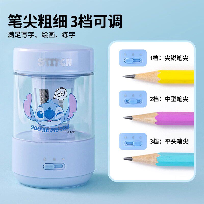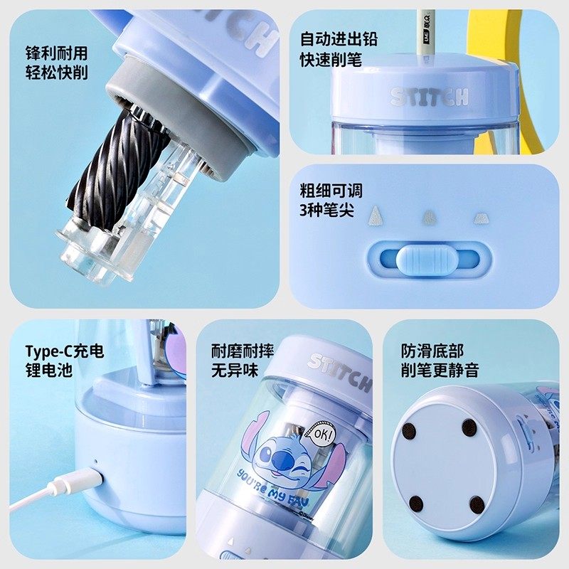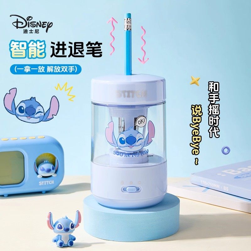 迪士尼联名全自动削笔机儿童免手扶削笔器电动卷笔刀转笔刀小学生专用铅笔刀幼儿园男女孩充电款刨笔机绞笔刀
