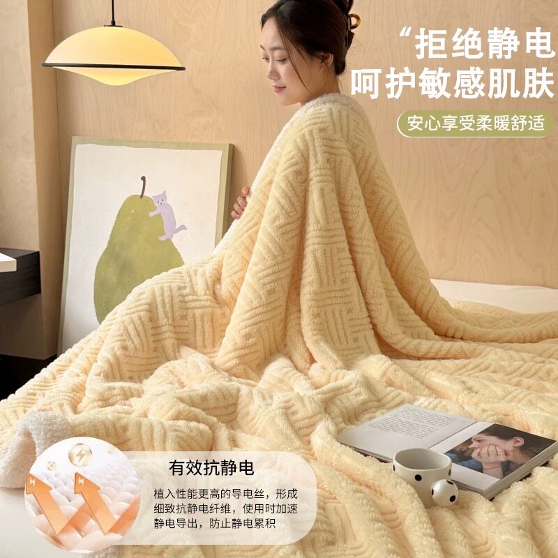 A类牛奶绒毛毯冬季盖毯可机洗单人宿舍毯披肩午睡毯双面绒床单厚