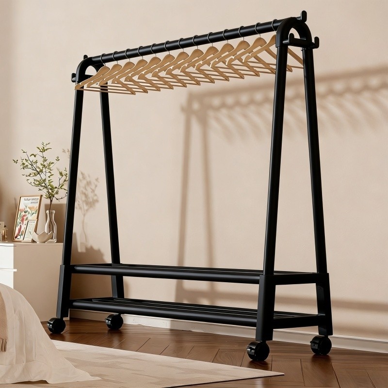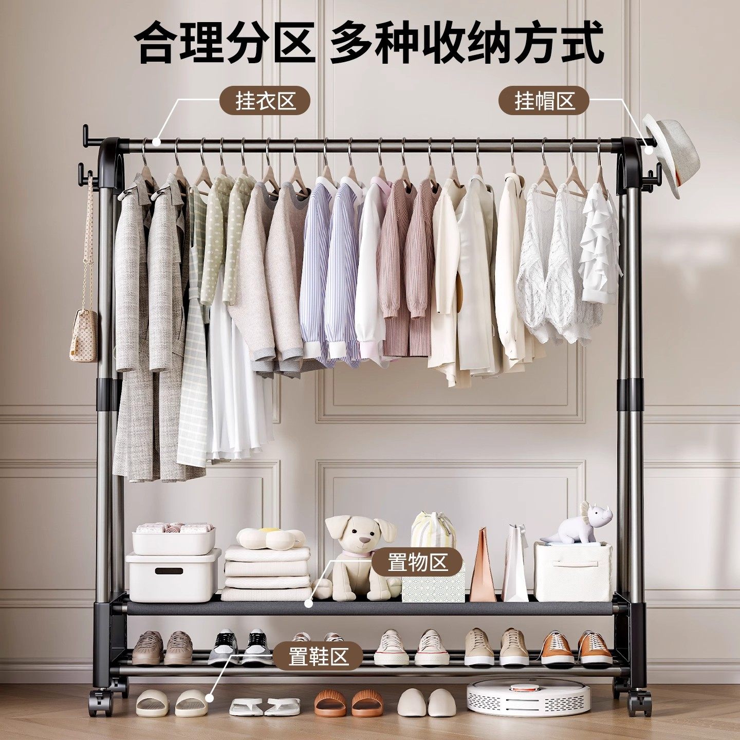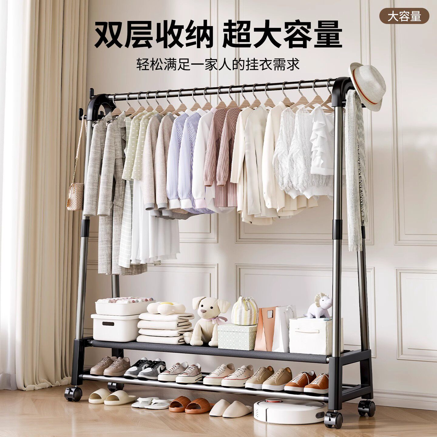 简易衣帽架可移动晾衣架落地家用卧室宿舍衣服收纳架室内挂衣架子