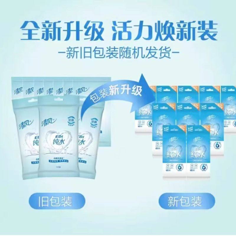 清风纯水湿纸巾单片独立小包便携装母婴儿手口湿巾清洁润肤无酒精