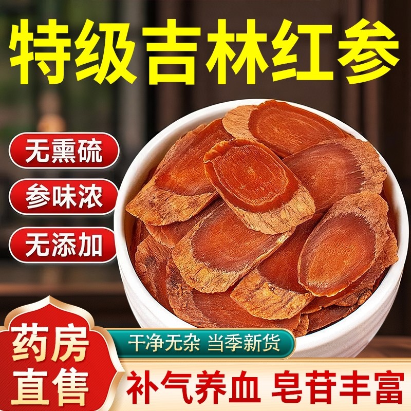 红参片官方长旗舰店正品白人参特级红参片山中药材红参片即食无糖