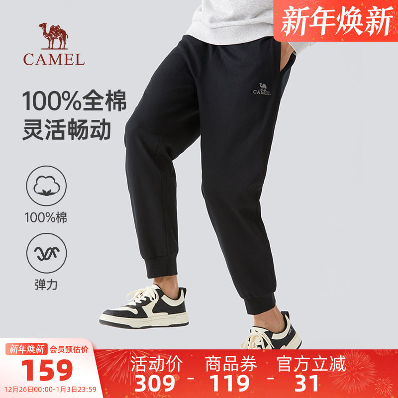 骆驼男装休闲裤男春秋直筒新款纯棉针织运动裤束脚显瘦百搭卫裤男