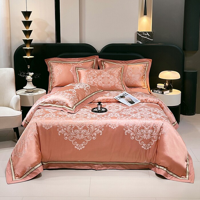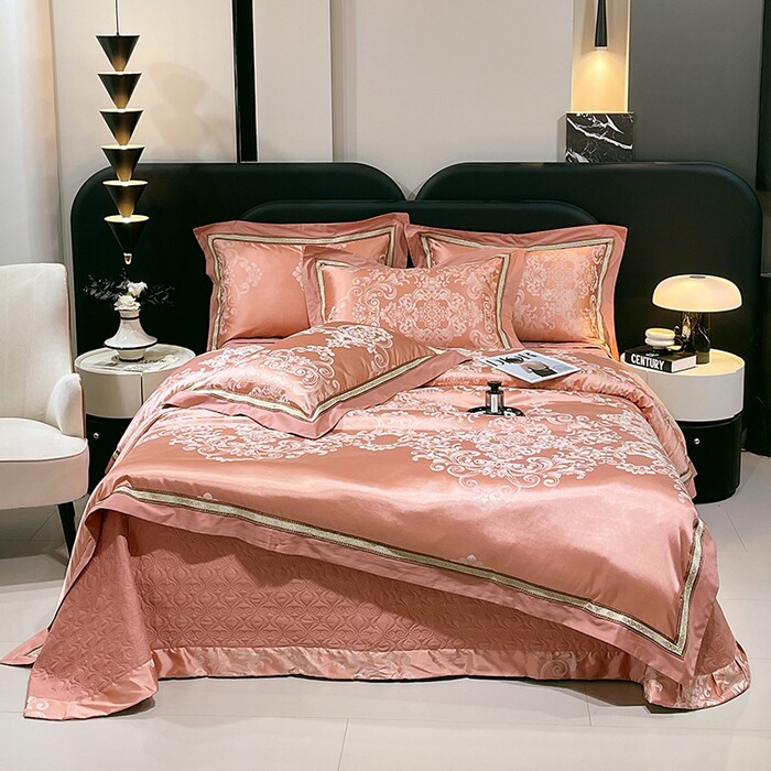 纯棉贡缎提花夹棉床盖四件套新中式缎面床品套件轻奢欧式奢华花纹