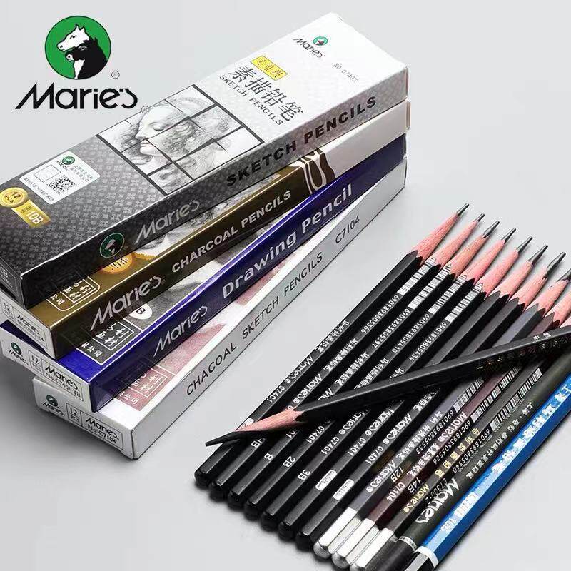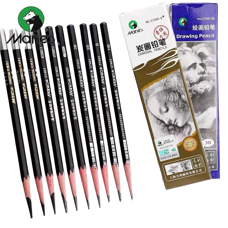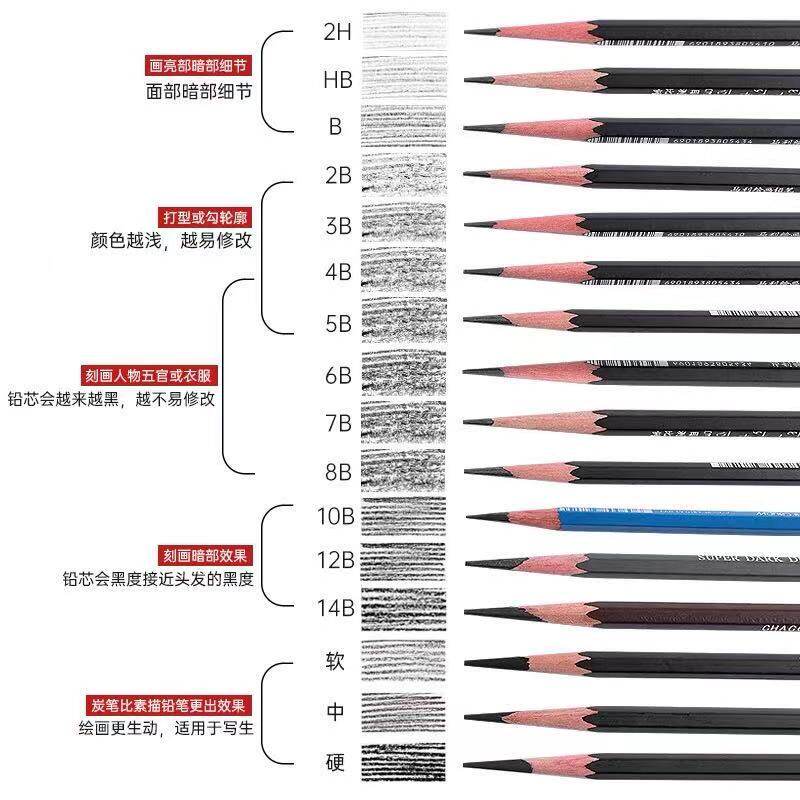 马利铅笔素描绘画碳笔初学者速写2h6b8b14b炭笔软中硬绘画2b美术