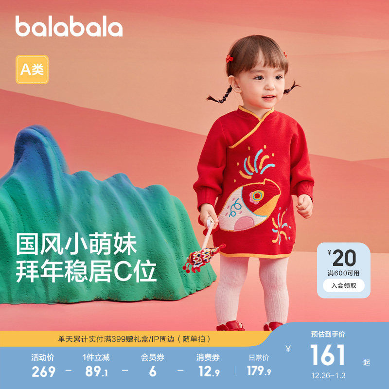 巴拉巴拉童装婴儿宝宝连衣裙儿童旗袍裙子2025新款春秋装国风拜年