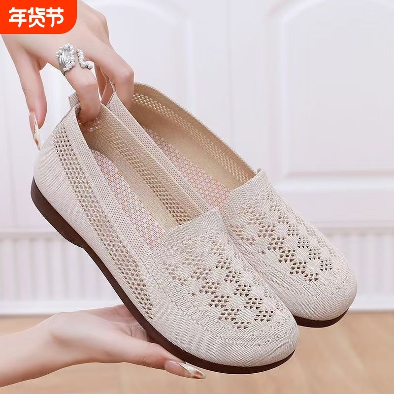 老北京布鞋女单鞋舒适浅口鞋防滑透气软底夏季妈妈鞋平底镂空轻便