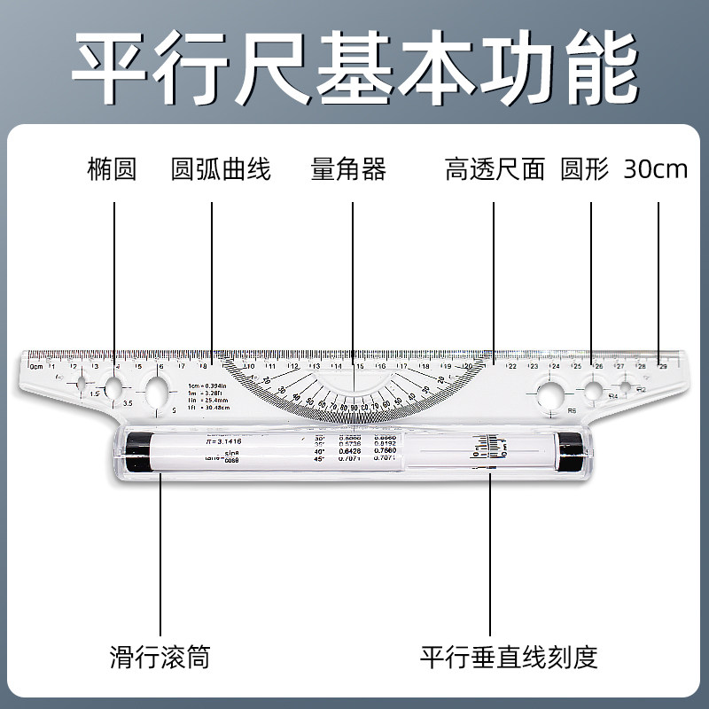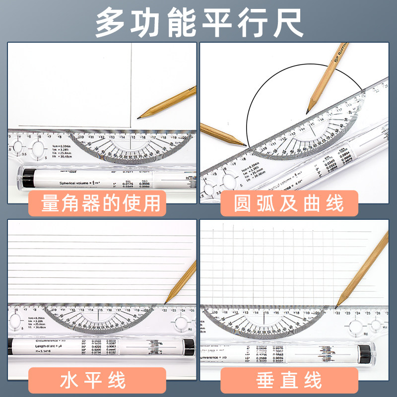 30cm设计角度平行尺绘图尺建筑注册师考试绘图工具专业多功能滚动推尺量角器画圆平行尺子滚尺平衡尺