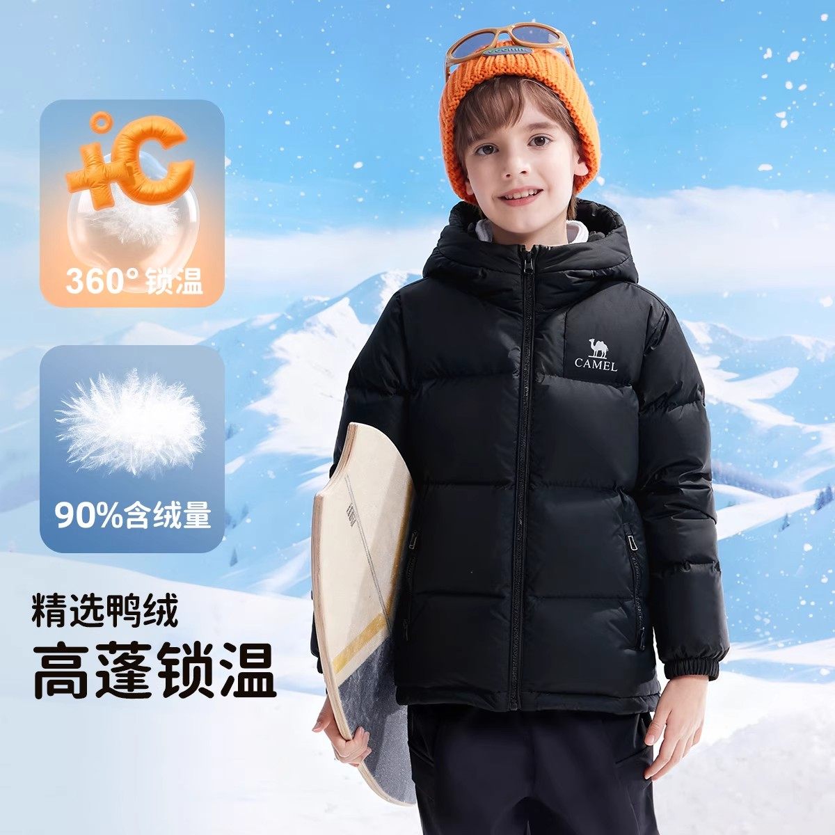 骆驼儿童羽绒服小战甲2025新款冬女童保暖加厚面包服连帽男童外套