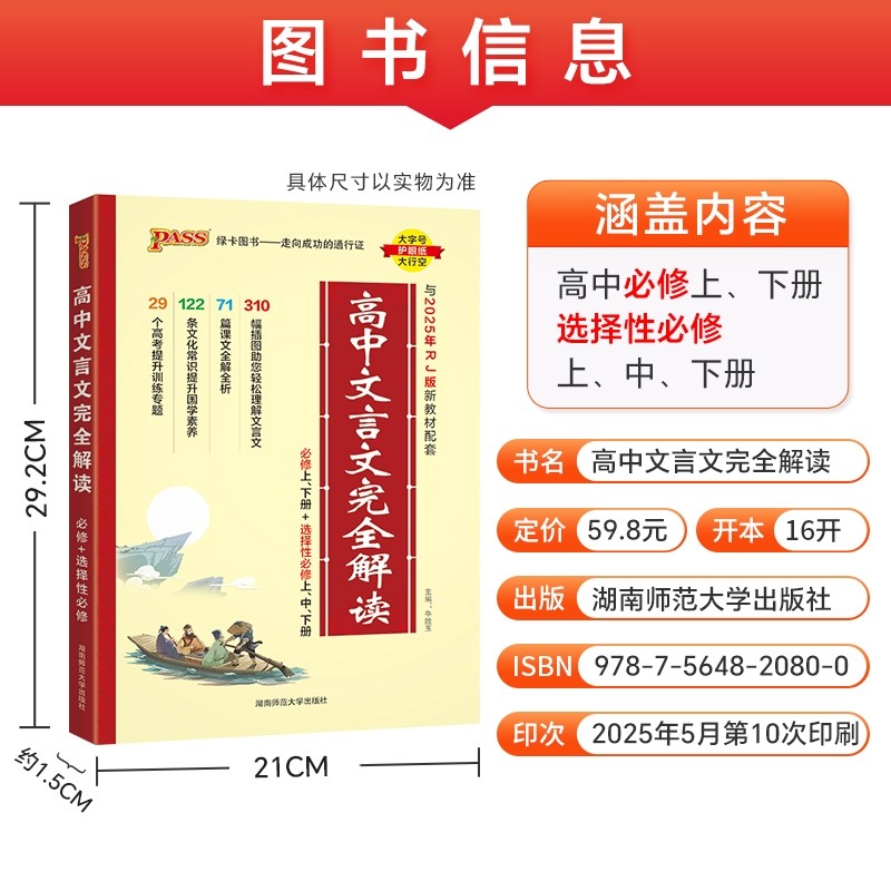 高中文言文完全解读语文翻译书高中必背古诗文2026新版译注及赏析详解必备一本通人教版必修选修全解全析高一高二高三阅读训练解析