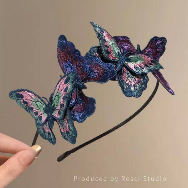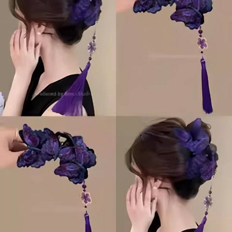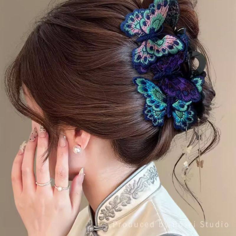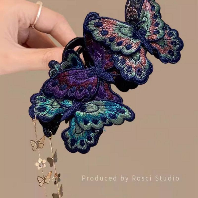 复古刺绣焕彩蝴蝶抓夹女流苏民族风2025新款盘发夹鲨鱼夹古风头饰
