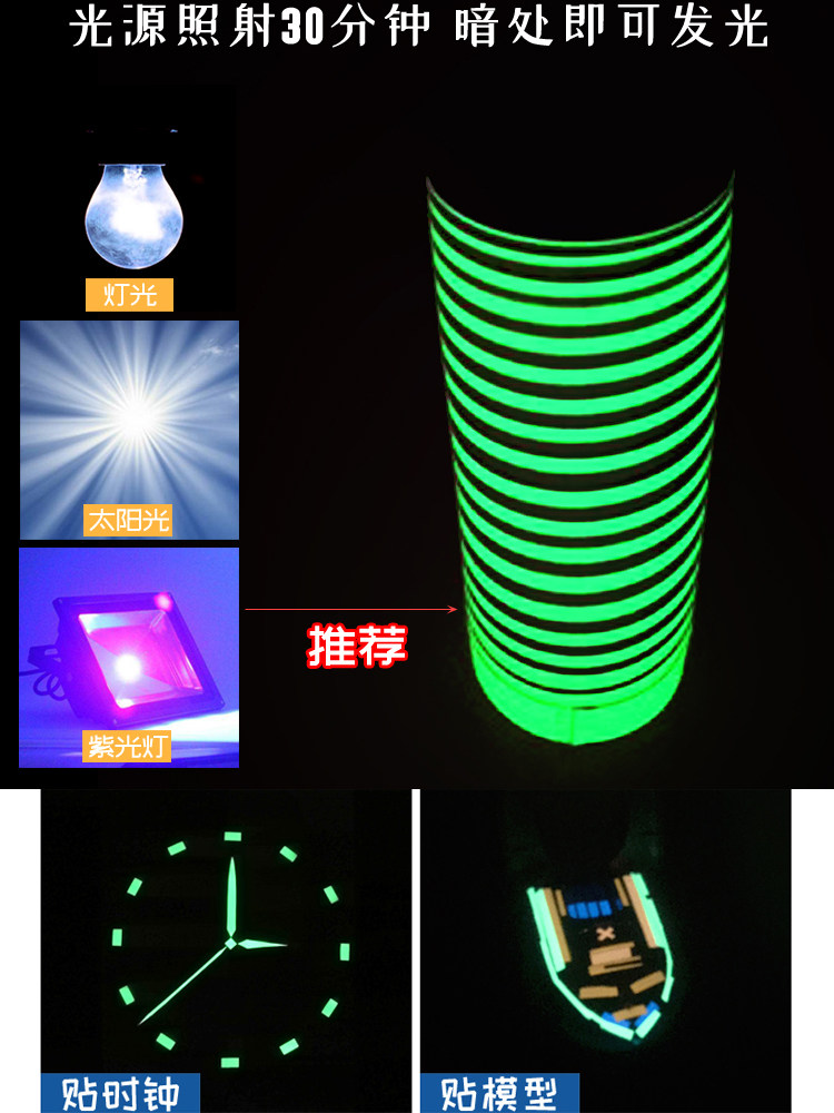 自发光胶带高粘性防水耐磨夜光胶布楼梯台阶消防通道警示安全出口标识贴蓄光荧光胶贴