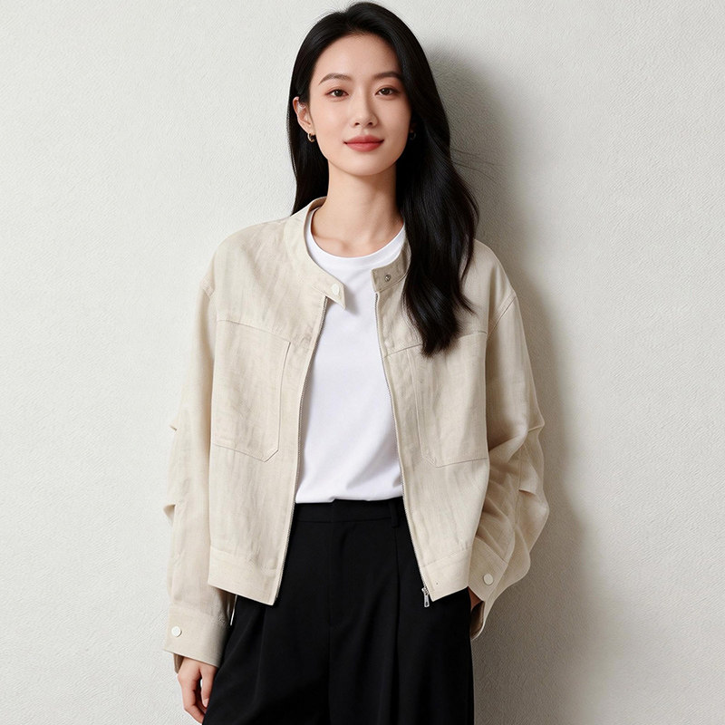 晚白2026春新款气质温婉小个子上衣莱赛尔亚麻百搭夹克外套女