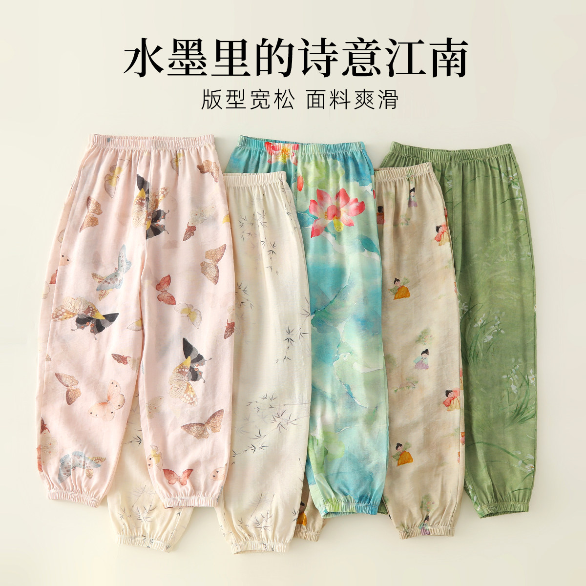 蔚未来女童裤子夏季薄款长裤儿童国风印花休闲裤小女孩防晒防蚊裤