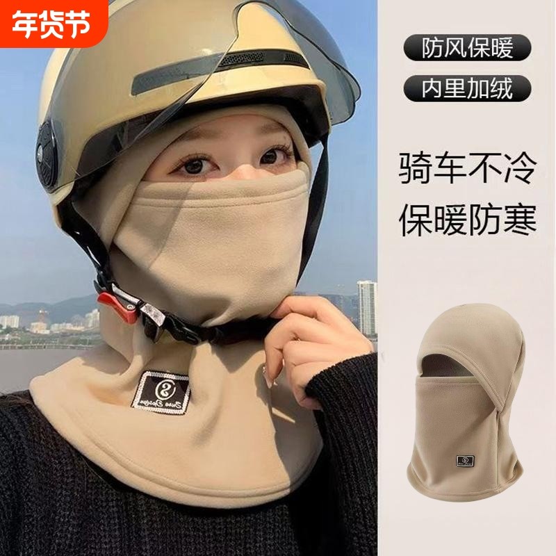冬季加绒保暖骑行帽女电动车防风防寒面罩头盔内胆围脖一体帽子男