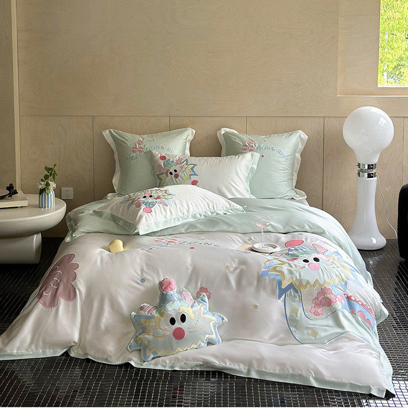 60支lf天丝贴布刺绣直播床上用品套件学生宿舍三件套卡通批发+