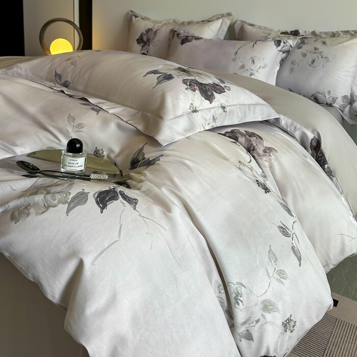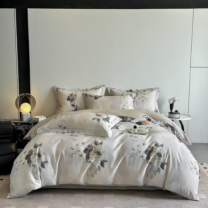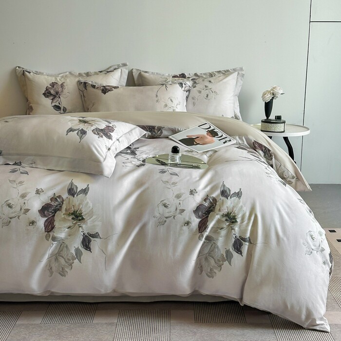 天丝棉数码印花四件套花卉印花纯棉加莱赛尔纤维床品套件柔软简约