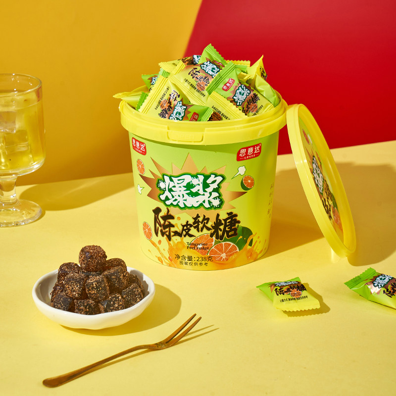 爆浆夹心陈皮软糖桶装喜糖酒店前台招待室解馋糖果小零食好吃散装