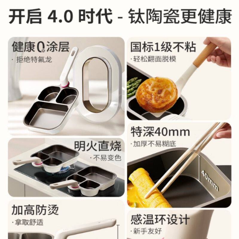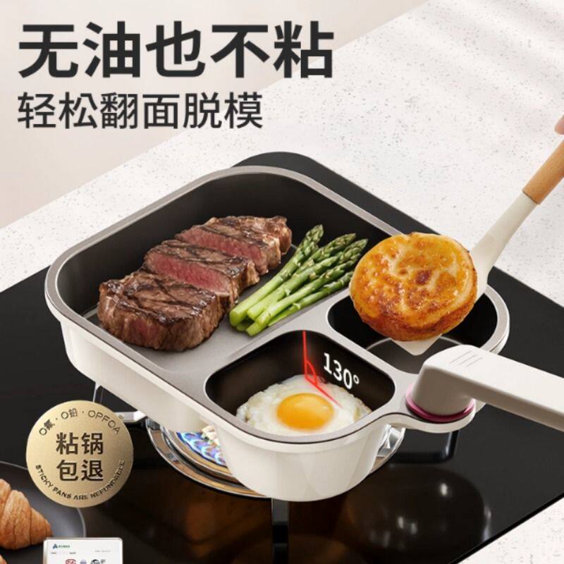 钛陶瓷三合一早餐锅鸡蛋汉堡家用不粘锅电磁炉煤气灶专用平底煎锅