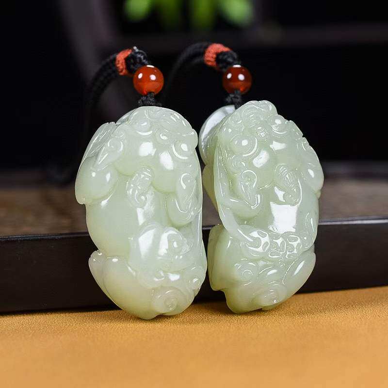 新疆和田玉招财貔貅吊坠男女情侣款项链真玉石皮丘挂件玉坠瑞兽