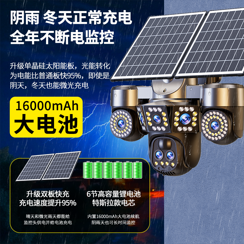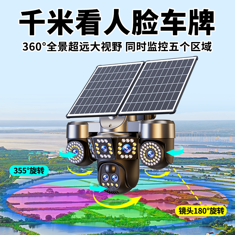 太阳能摄像头监控器360度无死角室外无电无网家用高清夜视摄影头