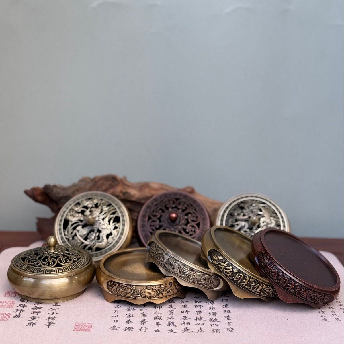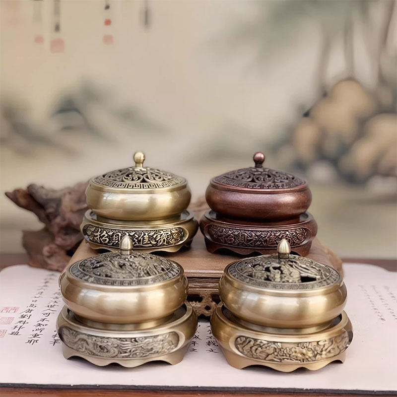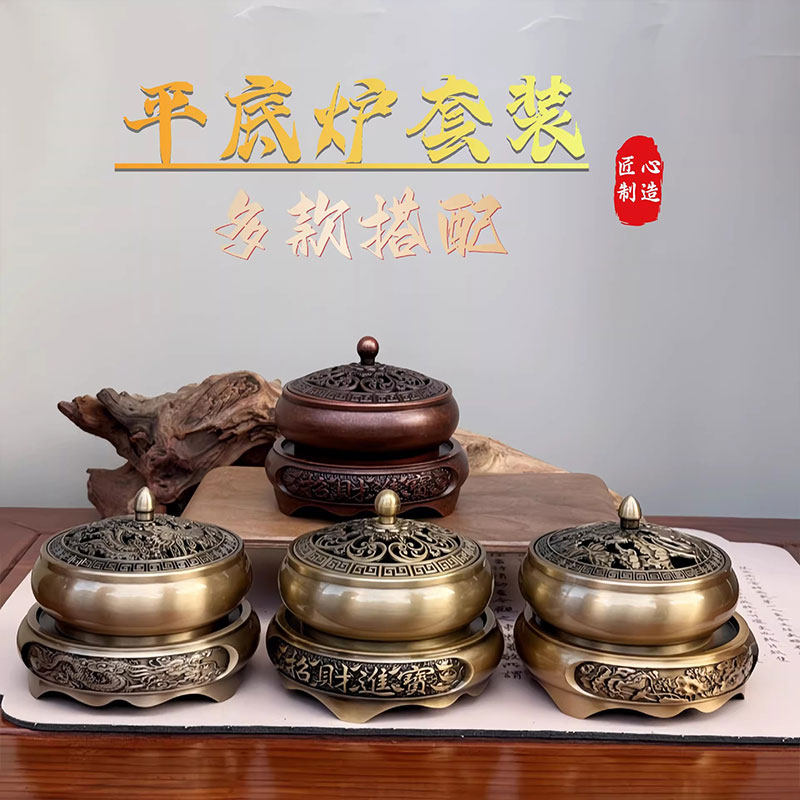 创意合金铜香炉金莲铜合金香薰炉龙凤盘香炉香道摆件底座金属黄铜