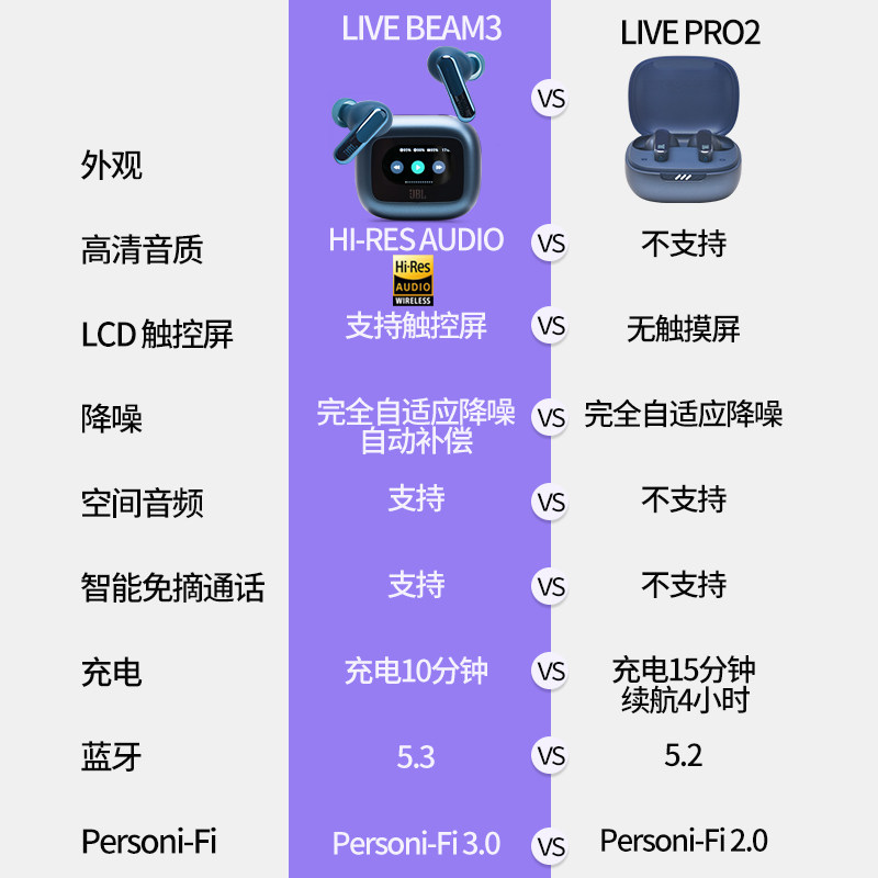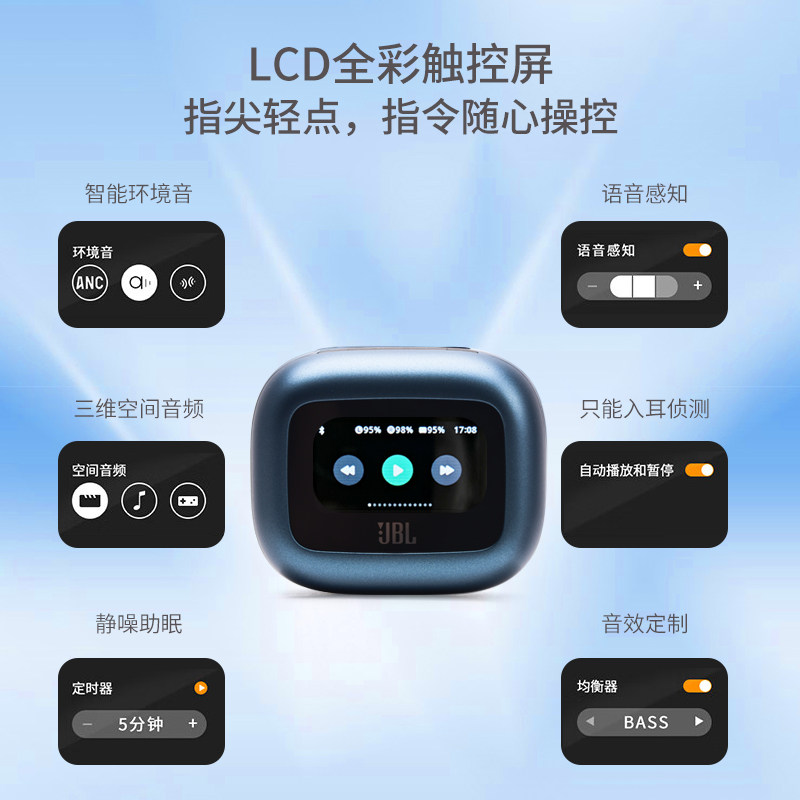 JBL live beam3 炫彩荚无线降噪蓝牙耳机触控屏耳麦