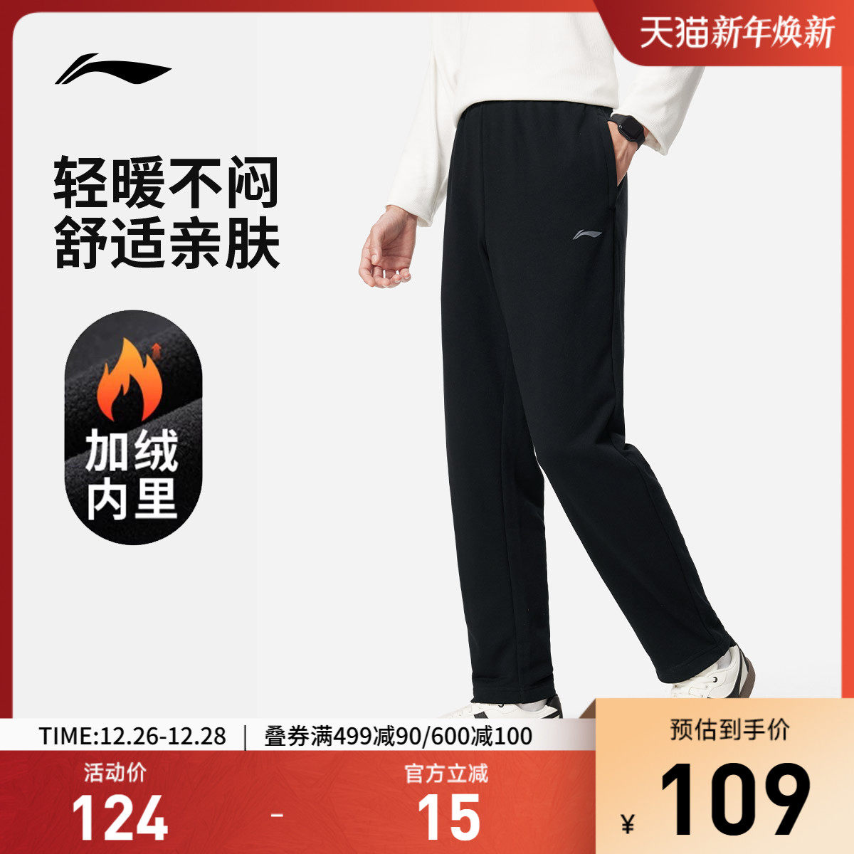 李宁运动裤男士秋季新款直筒裤宽松裤子长裤休闲裤黑色加绒卫裤男
