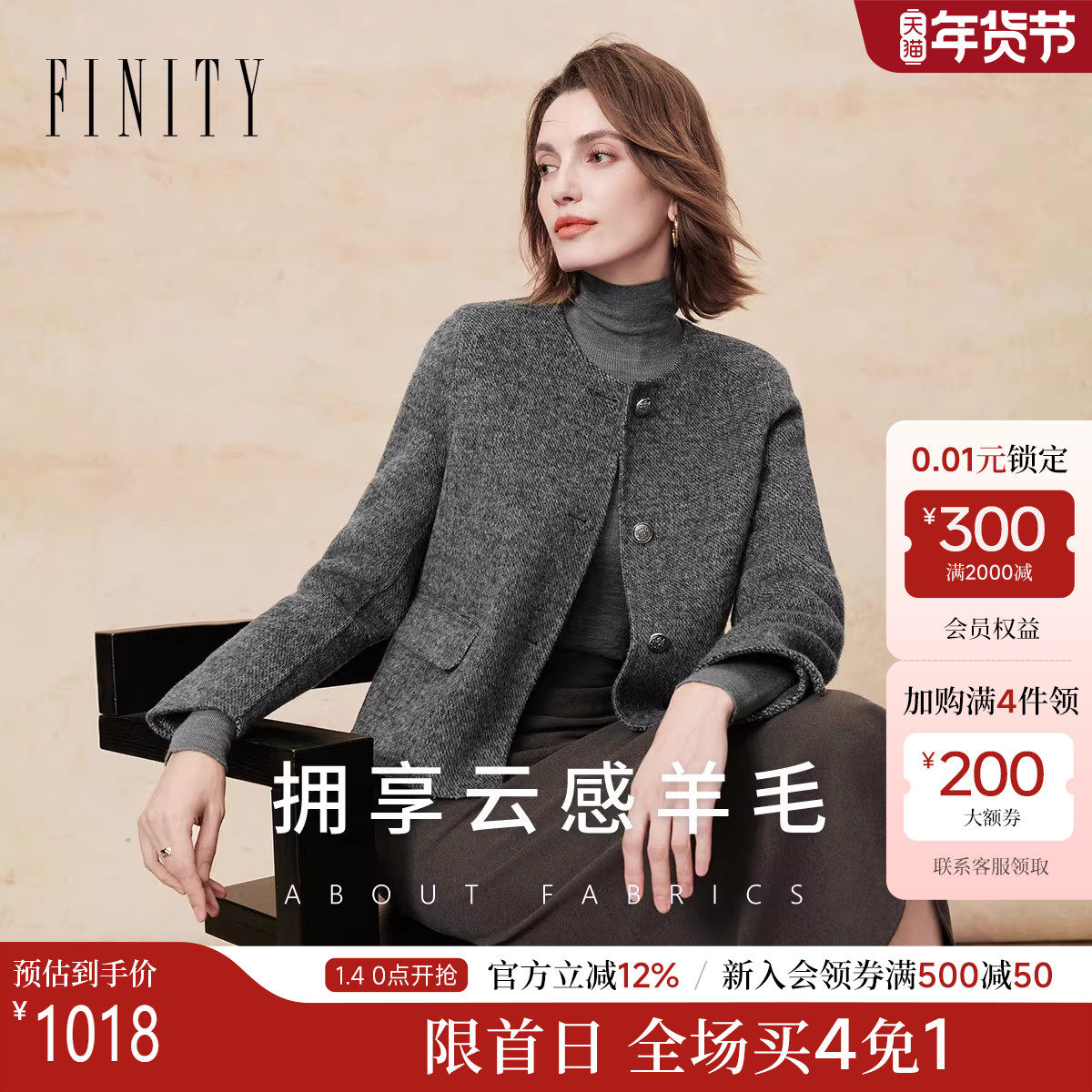 FINITY菲妮迪毛呢外套2025年冬季新款简约小香风百搭双面呢大衣女