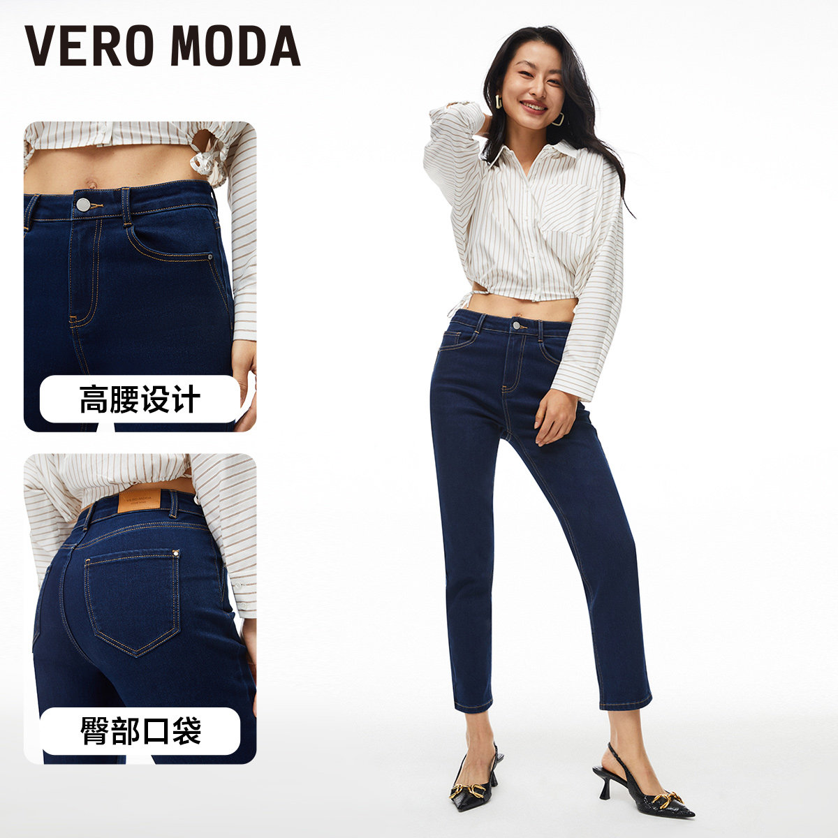 Vero Moda奥莱牛仔裤子女秋季新款复古中腰小脚九分裤显瘦流行