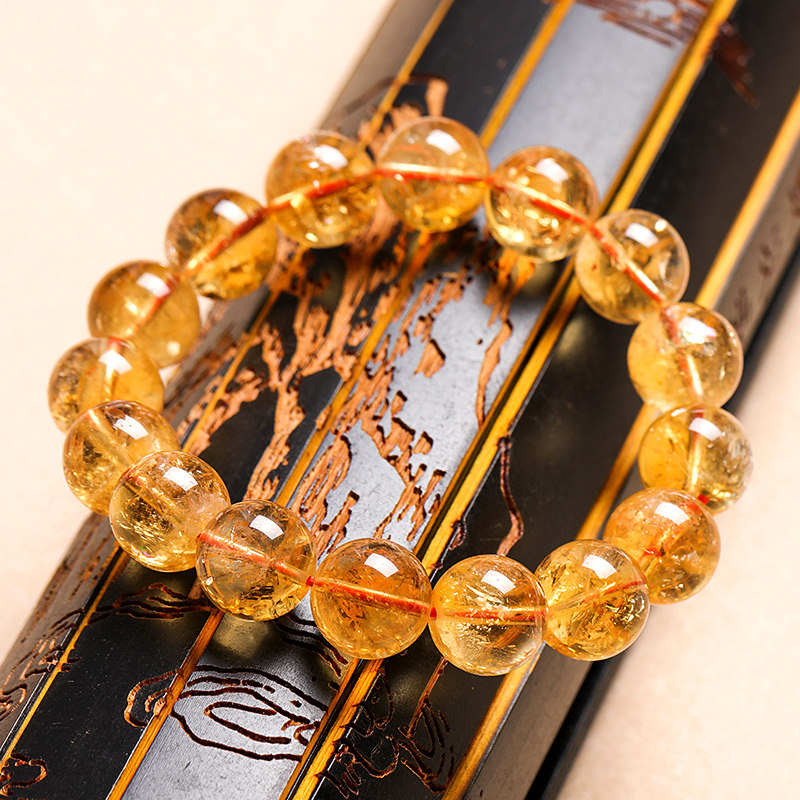 天然超七黄水晶大巴西橘黄水晶手链女手串男阿塞黄塔晶收藏级