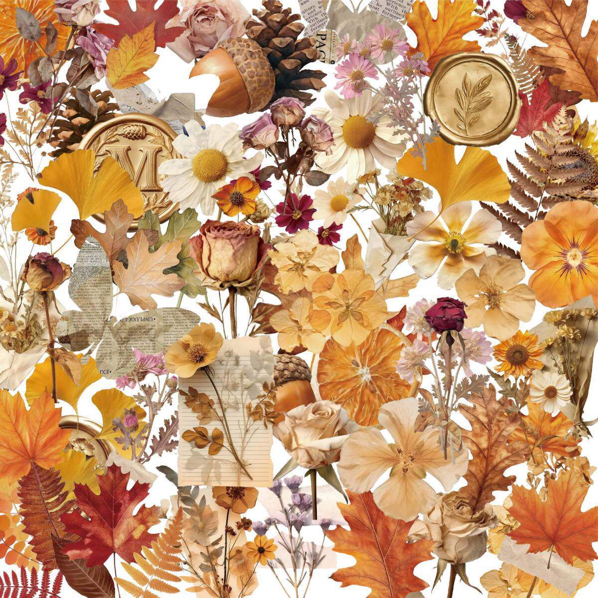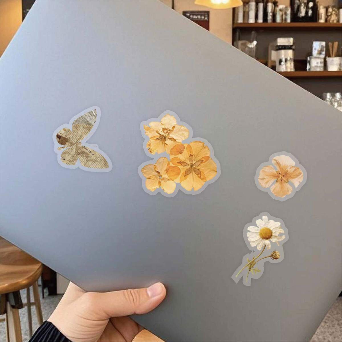 110张花朵树叶贴纸文艺复古干花仿真植物花卉PET透明防水diy贴画