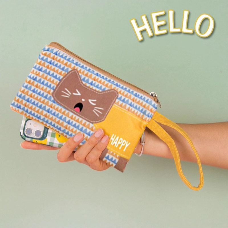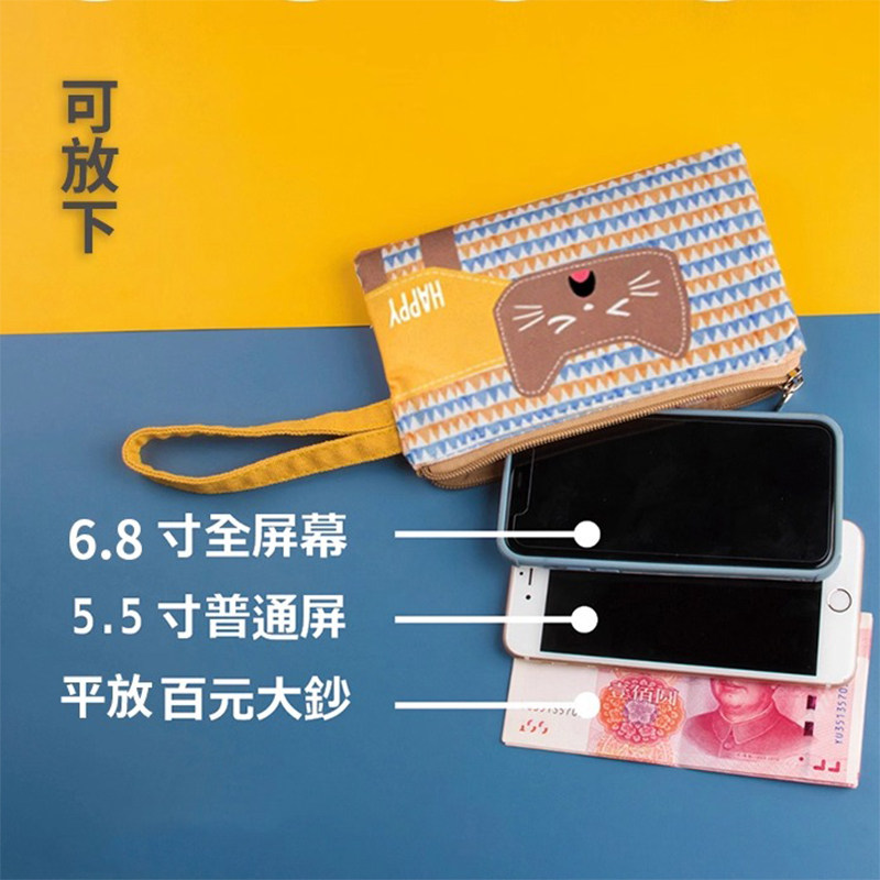 6.8寸手机包国风复古民族风简约帆布刺绣笔袋零钱钥匙拉链手拿包
