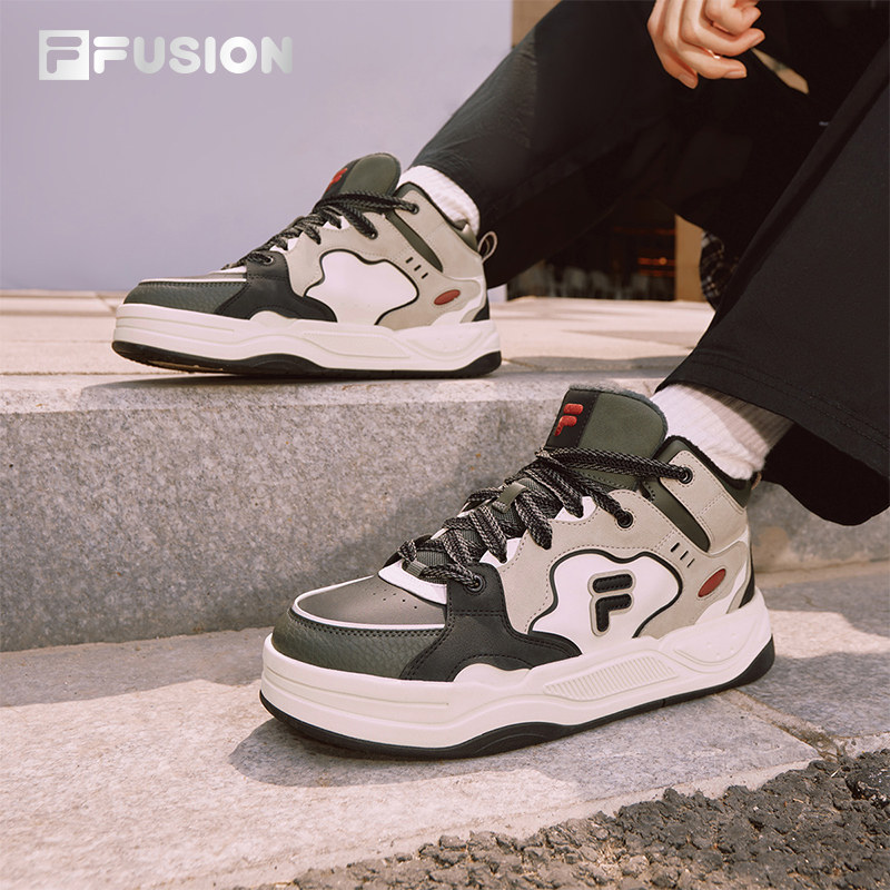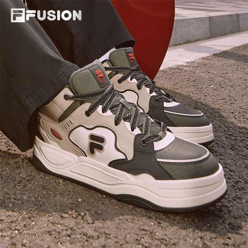 FILA FUSION斐乐潮牌BANK2高帮加绒板鞋2冬季新款男鞋保暖鞋子女