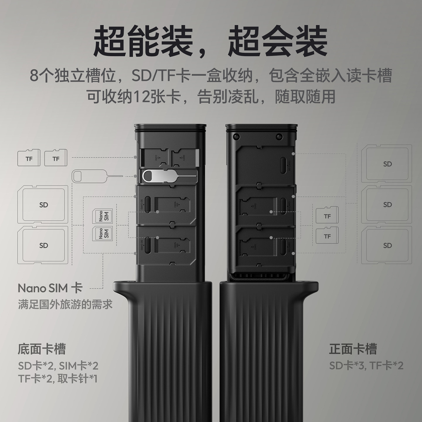 Ulanzi优篮子 CR2多功能闪存卡盒收纳读写二合一SD/TF/SIM卡读卡器USB3.1高速传输多合一适用手机平板电脑