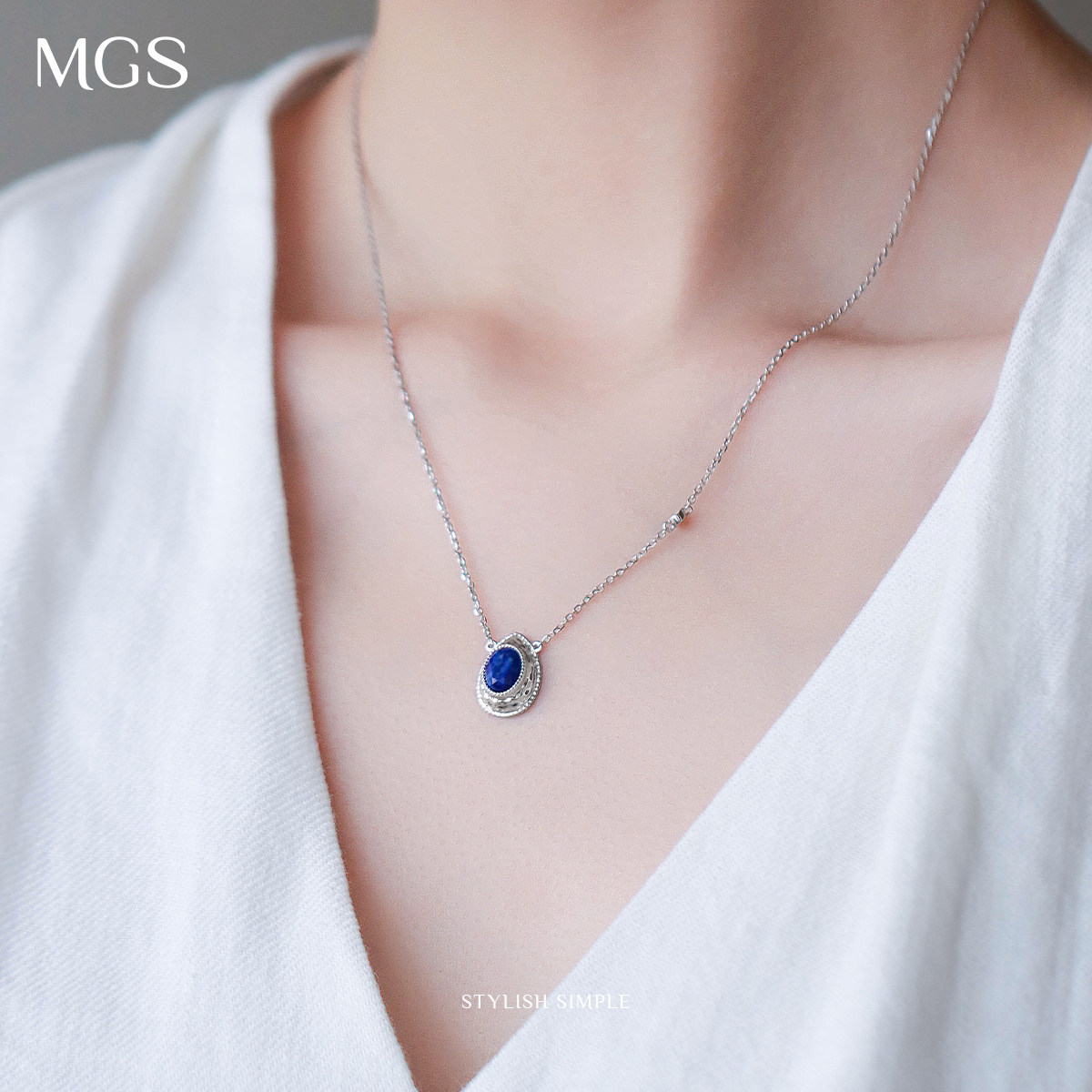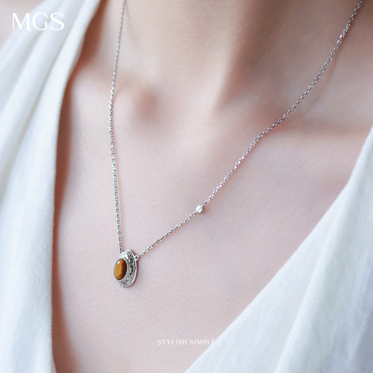 MGS/曼古银织梦925银水滴项链青金石虎眼石吊坠时尚潮流男女颈链