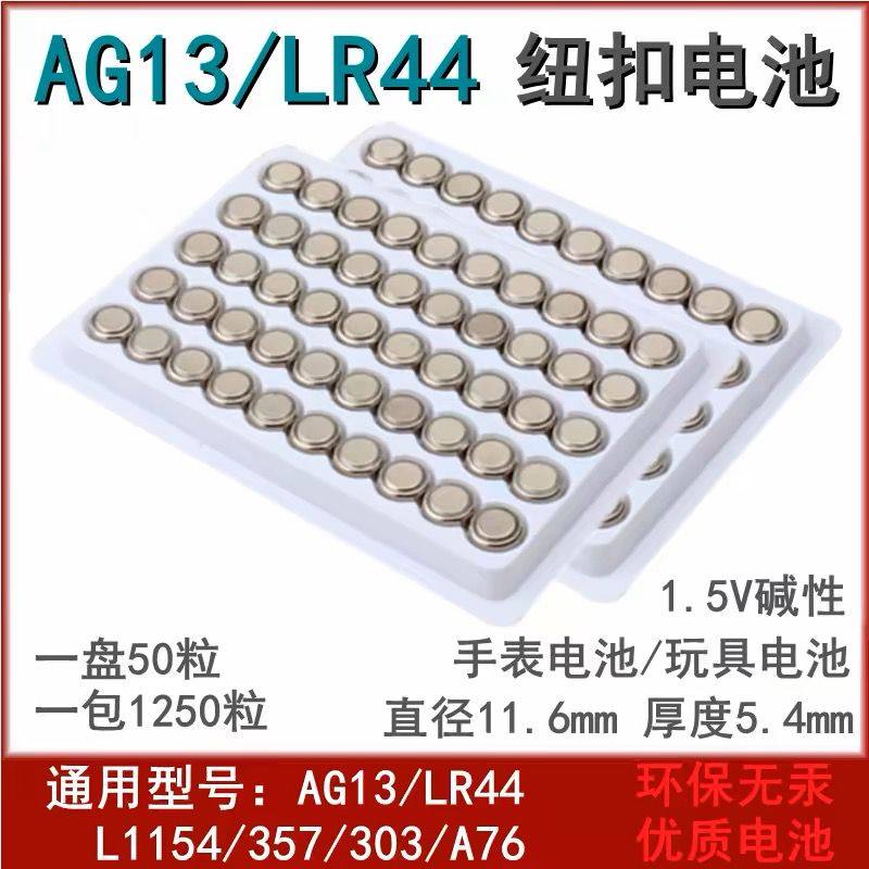 LR44纽扣电池AG13/A76 L1154 357a电子手表玩具遥控器计算机sr44wh小型号1.5v伏碱性通用式游标卡尺