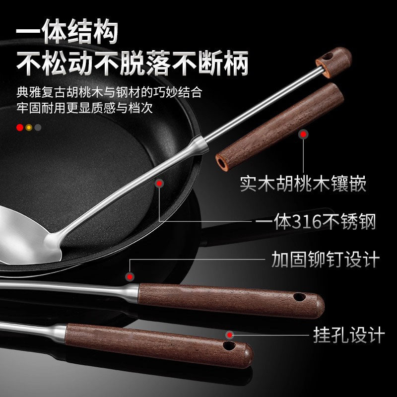不锈钢锅铲316食品级家用炒菜铲子木柄把铲勺加厚铁锅铲厨具套装