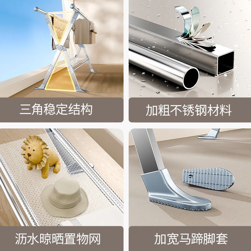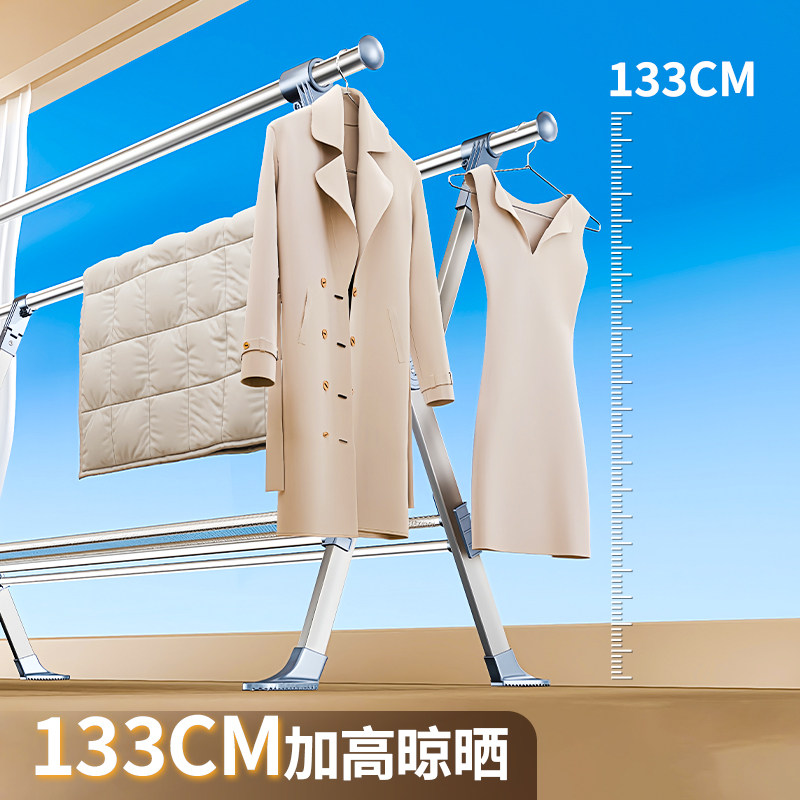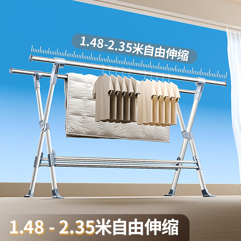 加厚不锈钢落地晾衣架伸缩折叠晾衣杆晒被神器室内外晒衣架挂衣架