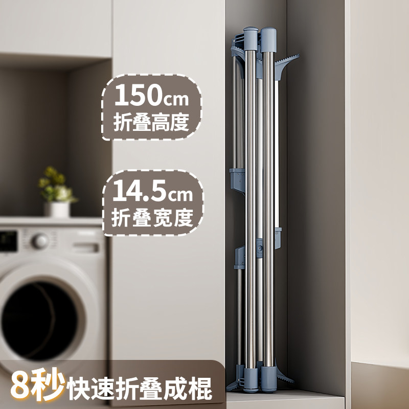 隐形折叠晾衣架免打孔晾衣杆落地伸缩不占地吸盘阳台侧面晾衣神器